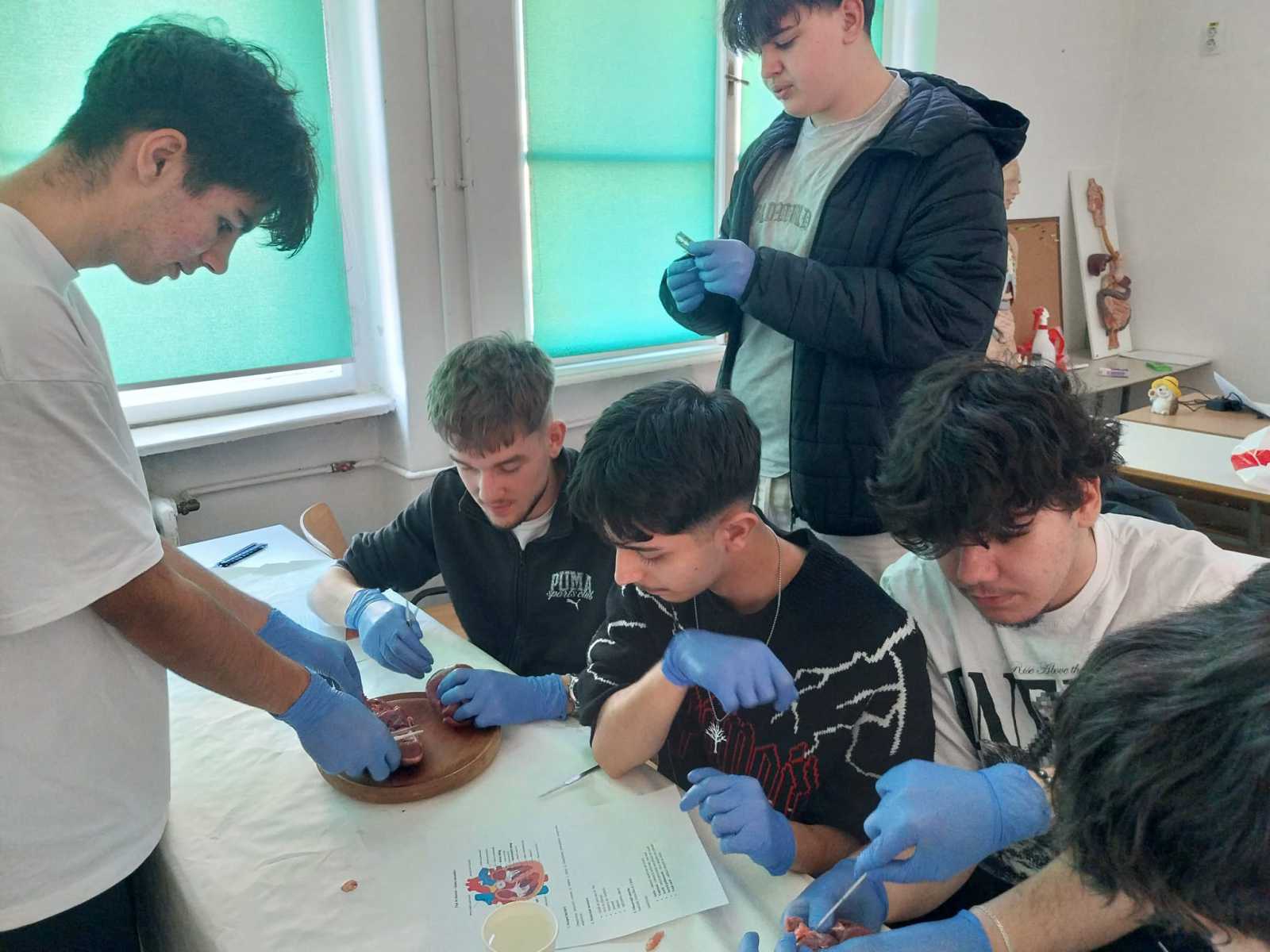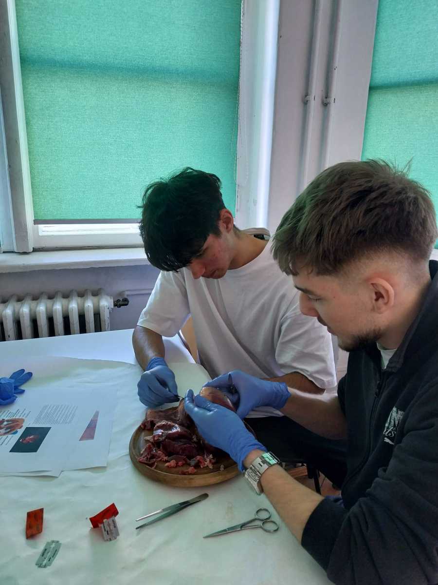 Astăzi, elevii de clasa a X-a A au realizat o disecție pe un ficat de porc, cu scopul de a completa cunoștințele teoretice deja dobândite. De asemenea, au efectuat disecție și pe inima de porc, activitate care a reprezentat o introducere practică pentru capitolul ce urmează a fi studiat, dedicat sistemului circulator. S-a ales această specie, deoarece atât ficatul, cât și inima de porc seamănă foarte mult cu cele ale omului, fiind o modalitate adecvată de a studia structura acestor organe vitale.