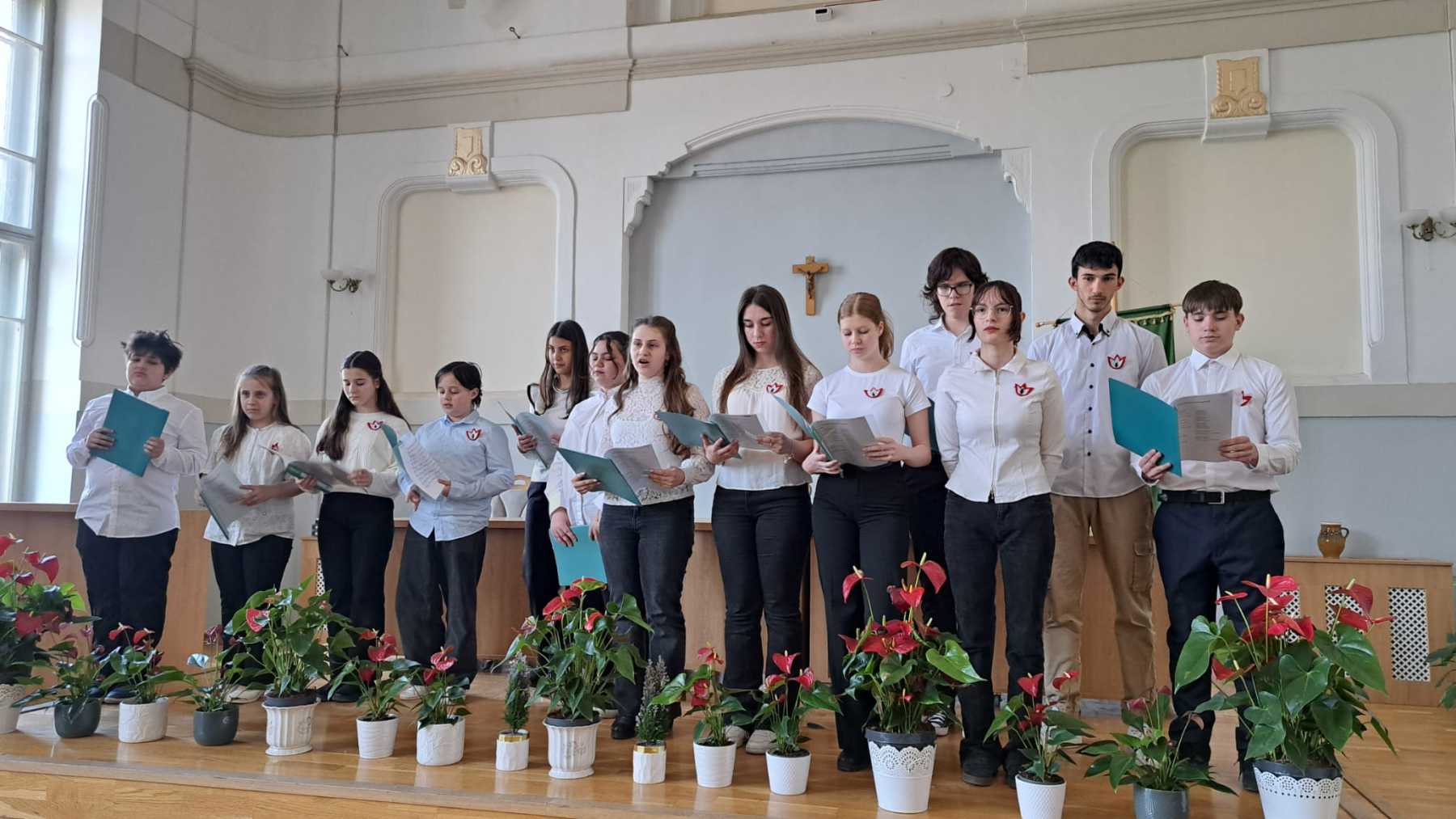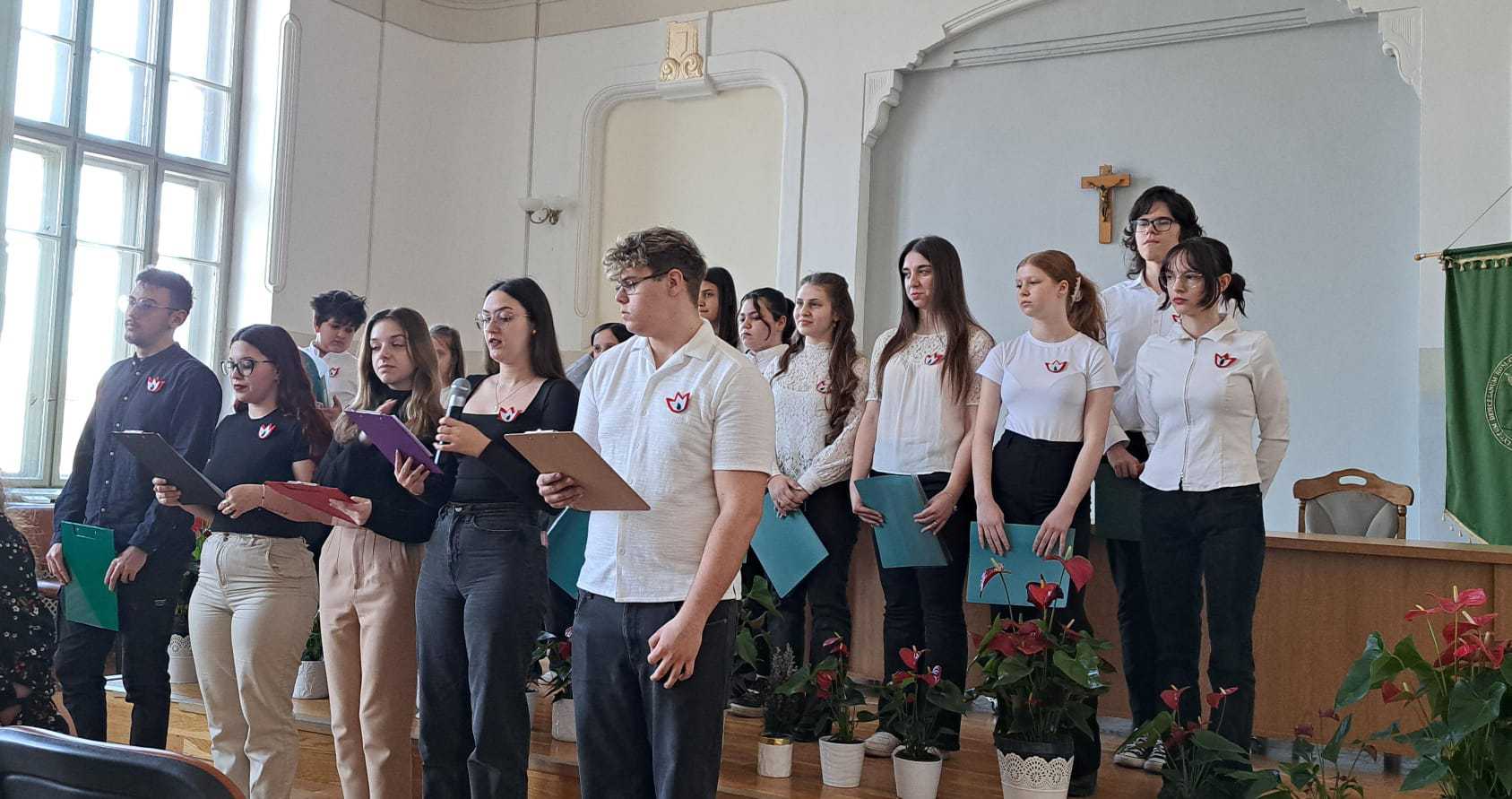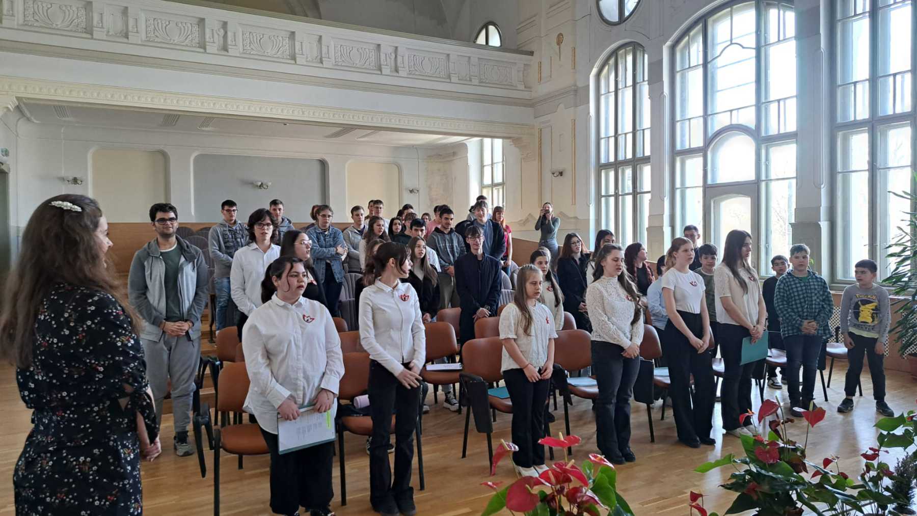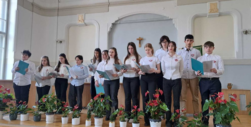 Az iskola kórusa ünnepi dalokkal járult hozzá a megemlékezés hangulatához, majd a tanulók elszavalták Petőfi Sándor leghíres forradalmi költeményét, a Nemzeti dalt.